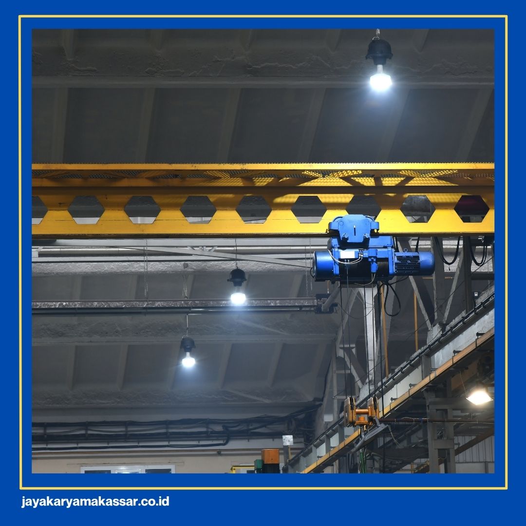 Material dalam jumlah besar seperti bahan baku cair atau padat sering membutuhkan alat angkat yang stabil. Bridge crane memberikan kontrol yang lebih presisi dibanding alat lain. Hal ini penting untuk menjaga kualitas dan konsistensi proses produksi. Sistem crane juga mendukung efisiensi waktu kerja.