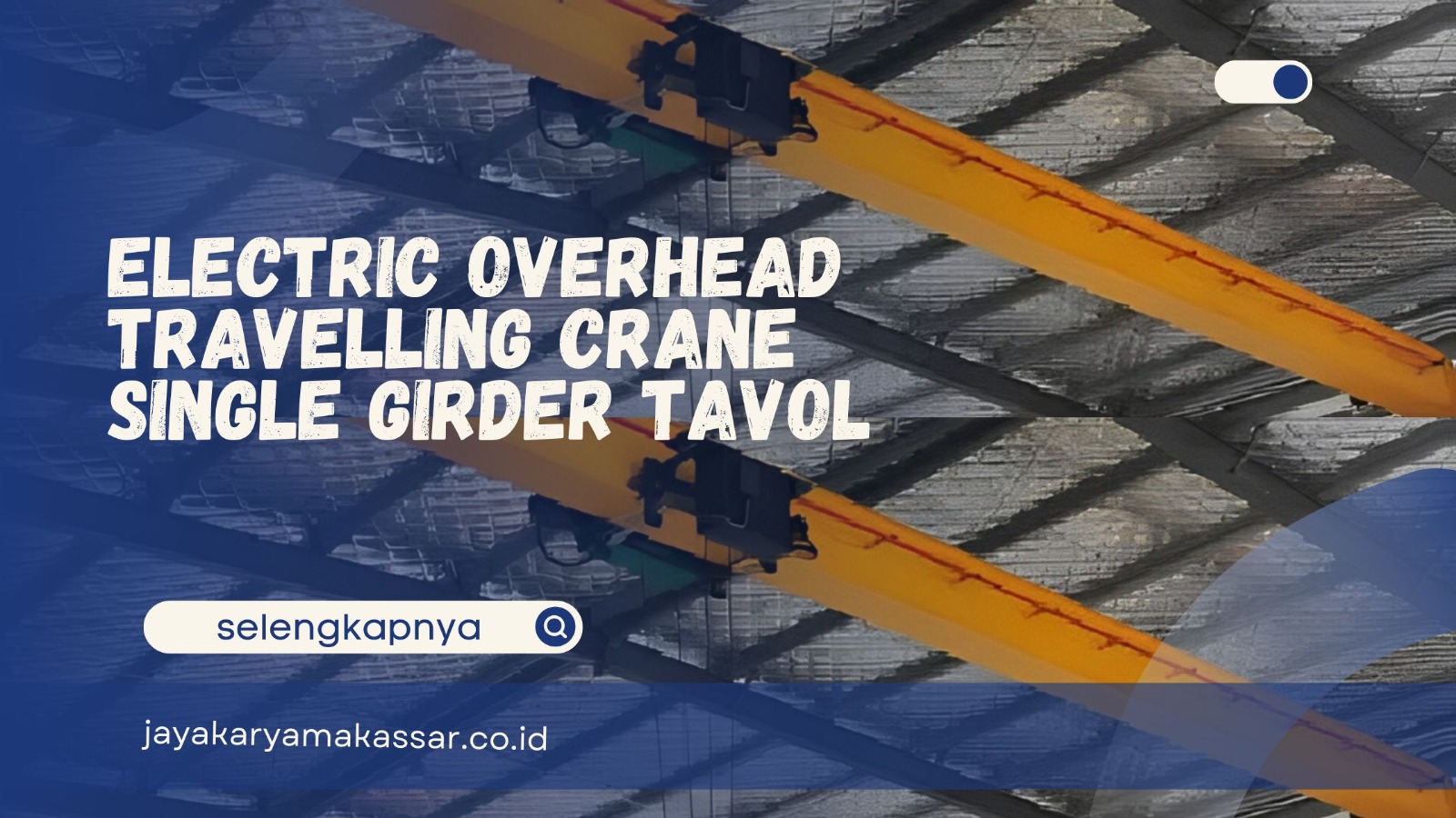 1. PT Jaya Karya Makassar menyediakan electric overhead travelling crane single girder Tavol bergaransi resmi sebagai solusi pengangkatan yang dirancang berdasarkan kebutuhan teknis industri.