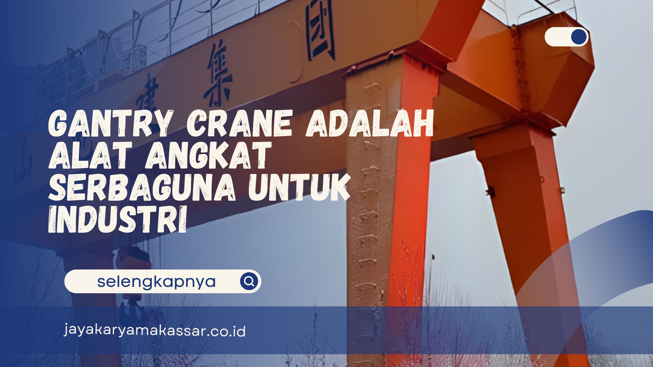 Gantry crane adalah alat angkat yang bekerja dengan sistem rangka penyangga di kedua sisi, sehingga tidak bergantung pada struktur bangunan. Alat ini menggunakan rel atau roda sebagai jalur pergerakan, memungkinkan pemindahan beban secara horizontal dan vertikal.
