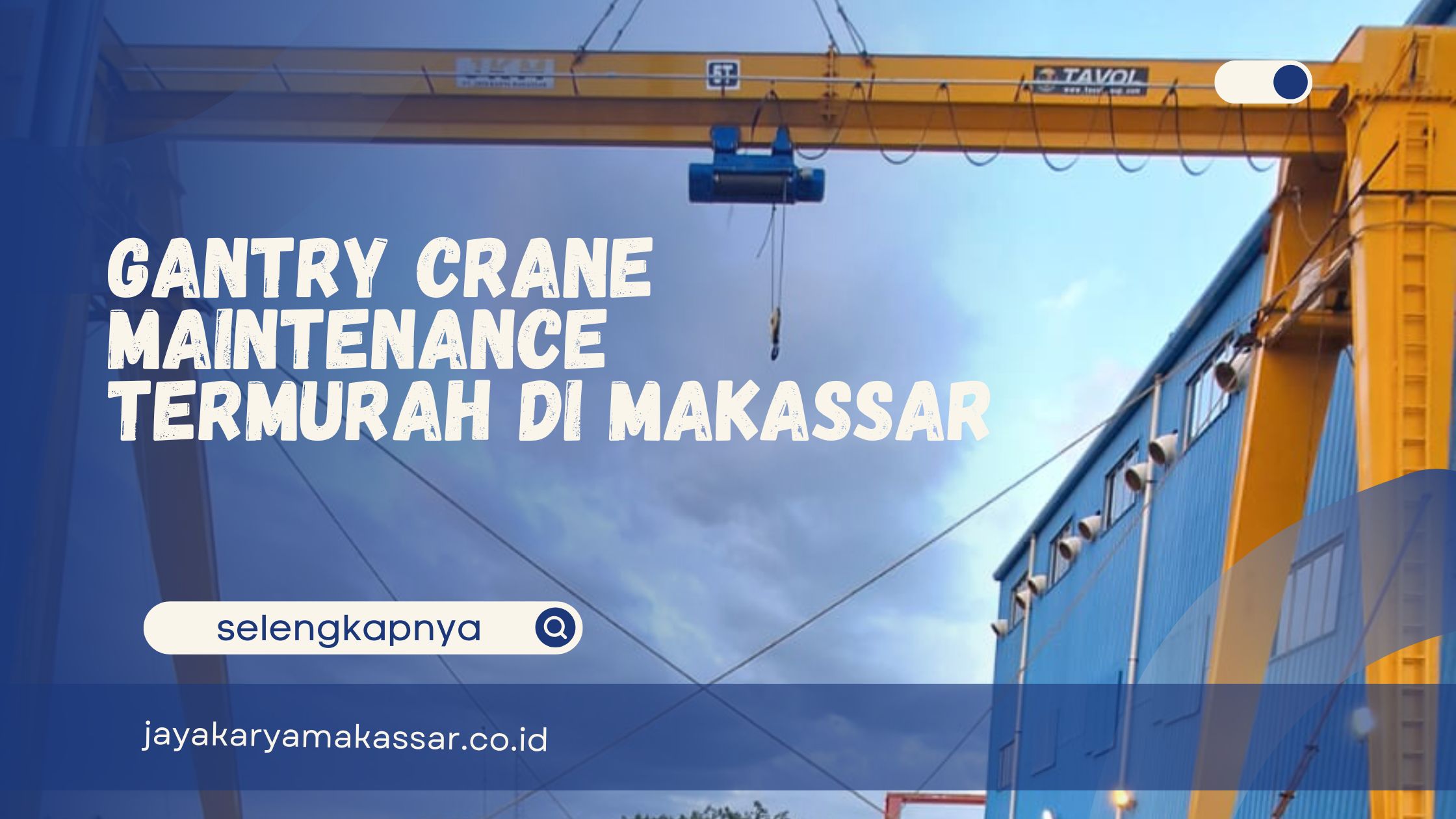 PT Jaya Karya Makassar menyediakan layanan gantry crane maintenance di Makassar dengan sistem kerja profesional dan harga yang terjangkau. Layanan ini ditujukan bagi perusahaan yang ingin menjaga performa alat angkat tetap stabil tanpa harus mengeluarkan biaya berlebihan. Dengan perawatan yang terencana, operasional perusahaan dapat berjalan lebih efisien dan aman.